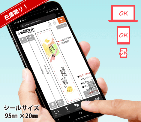 印刷ネットドットコム シミュレーターで自由にデザインできる未開封シール【新サイズ 未開封シール 95×20 アートを2025/12/23 発売開始】 在庫限りの格安提供。豊富なテンプレート、クリップアートを組み合わたり、ロゴや画像、写真などをアップロードするだけでオリジナル未開封シールをデザインできます。もちろん印刷はお任せください。